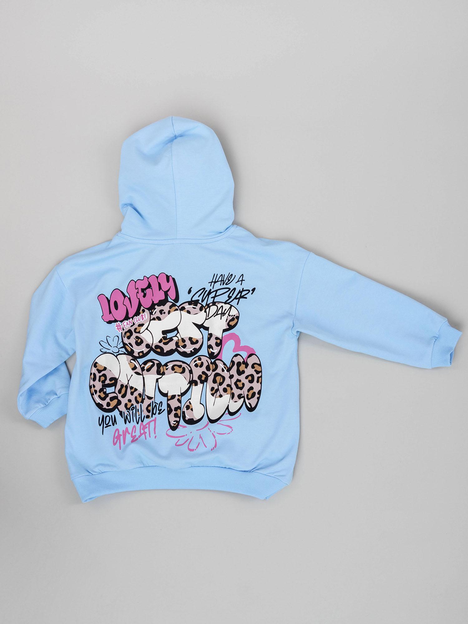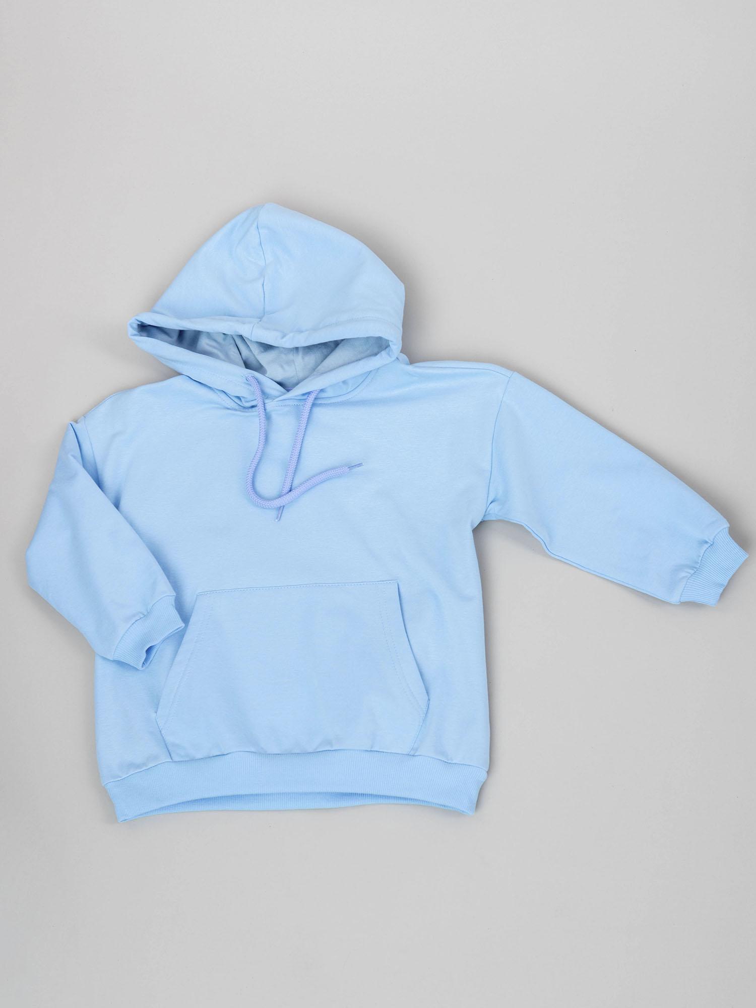 Толстовка (пуловер) для девочки голубого цвета — уютная и мягкая модель из футера с начёсом, отлично подходит для прохладной погоды и повседневной носки.