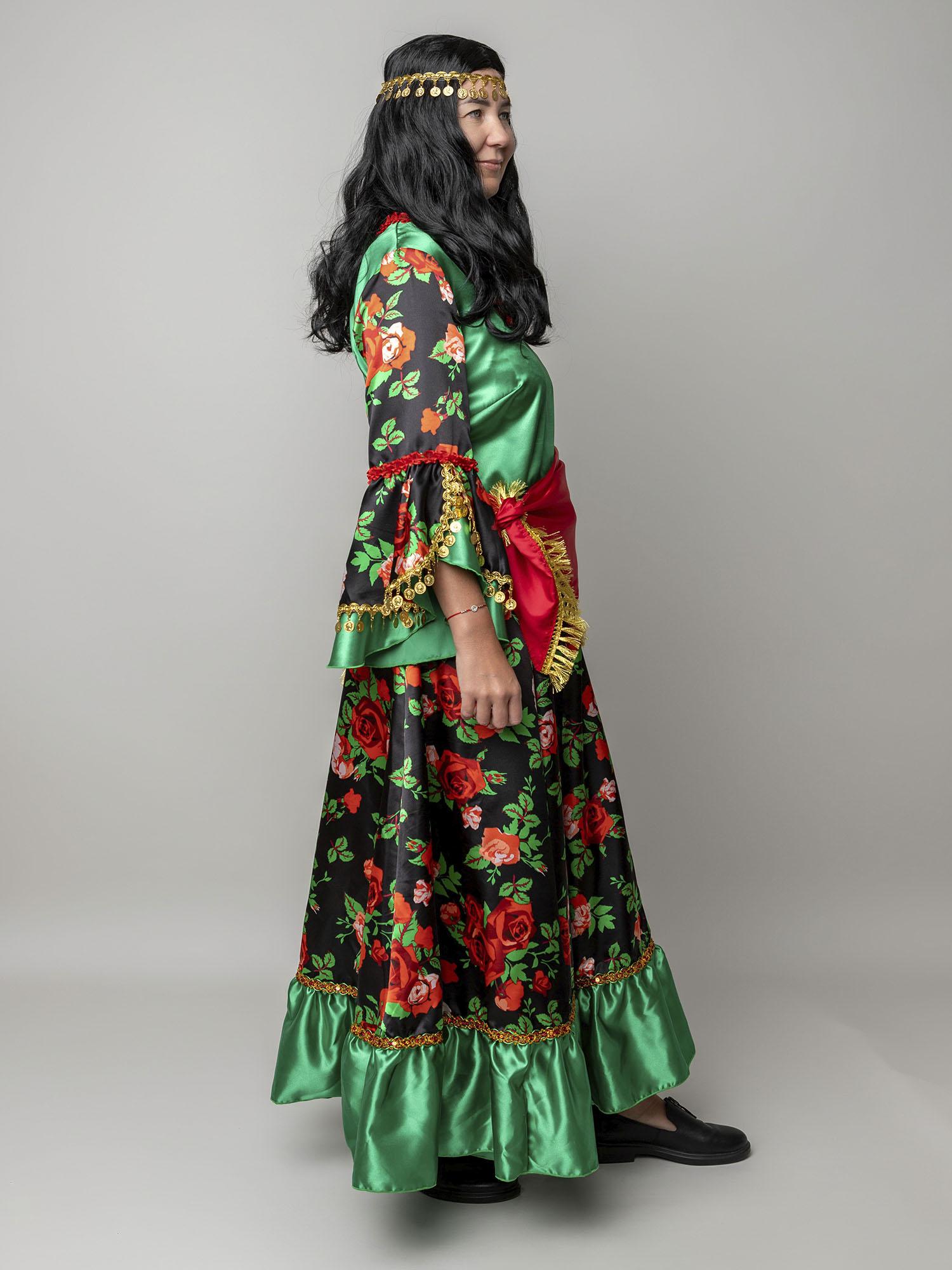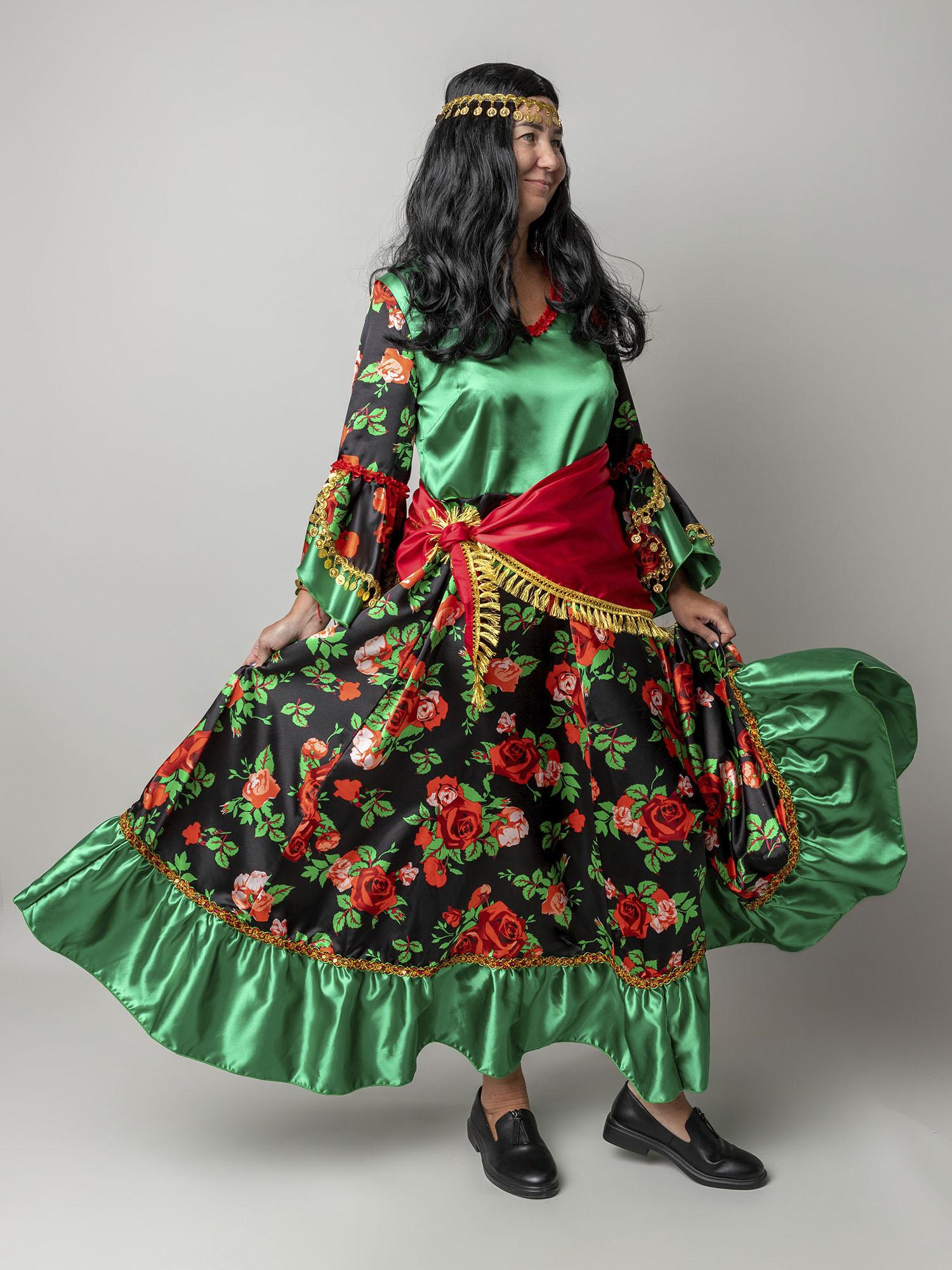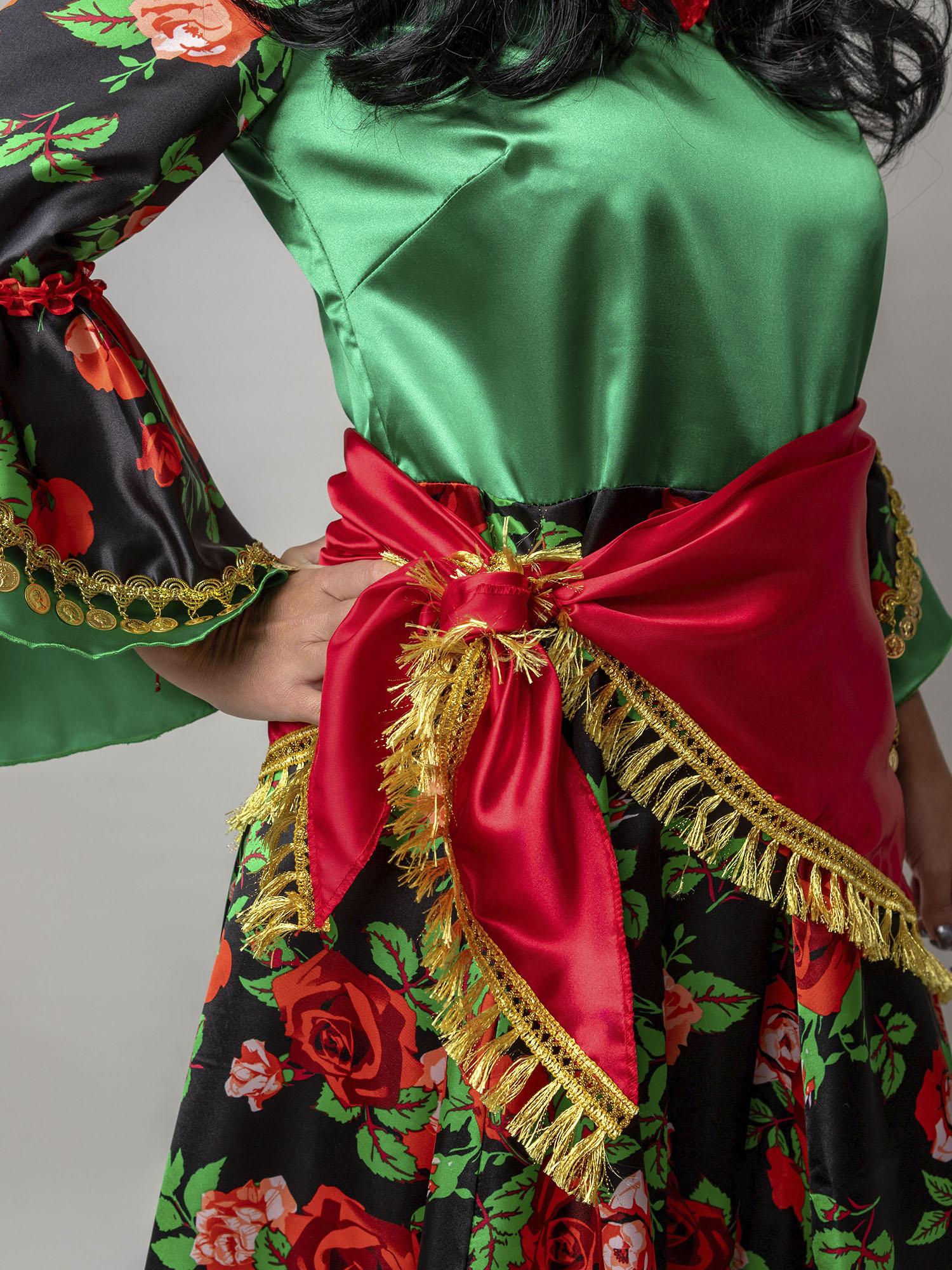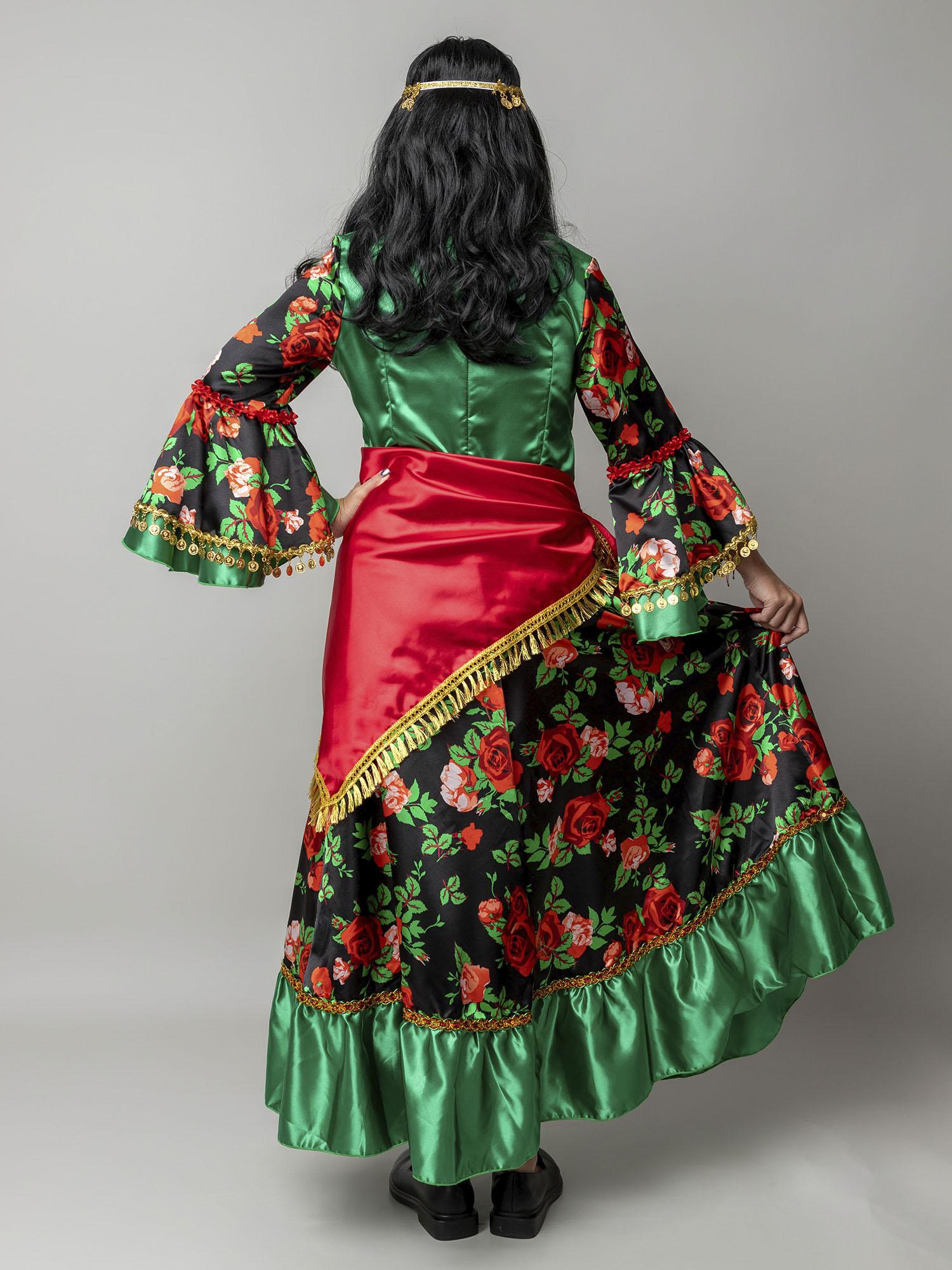 Карнавальный костюм «Цыганка Роза» — яркий и эффектный образ для сценических выступлений и праздников. В комплект входят платье, платок, парик и ожерелье на голову — монисто. Наряд создаёт выразительный, запоминающийся образ и отлично подойдёт для тематических мероприятий и утренников.