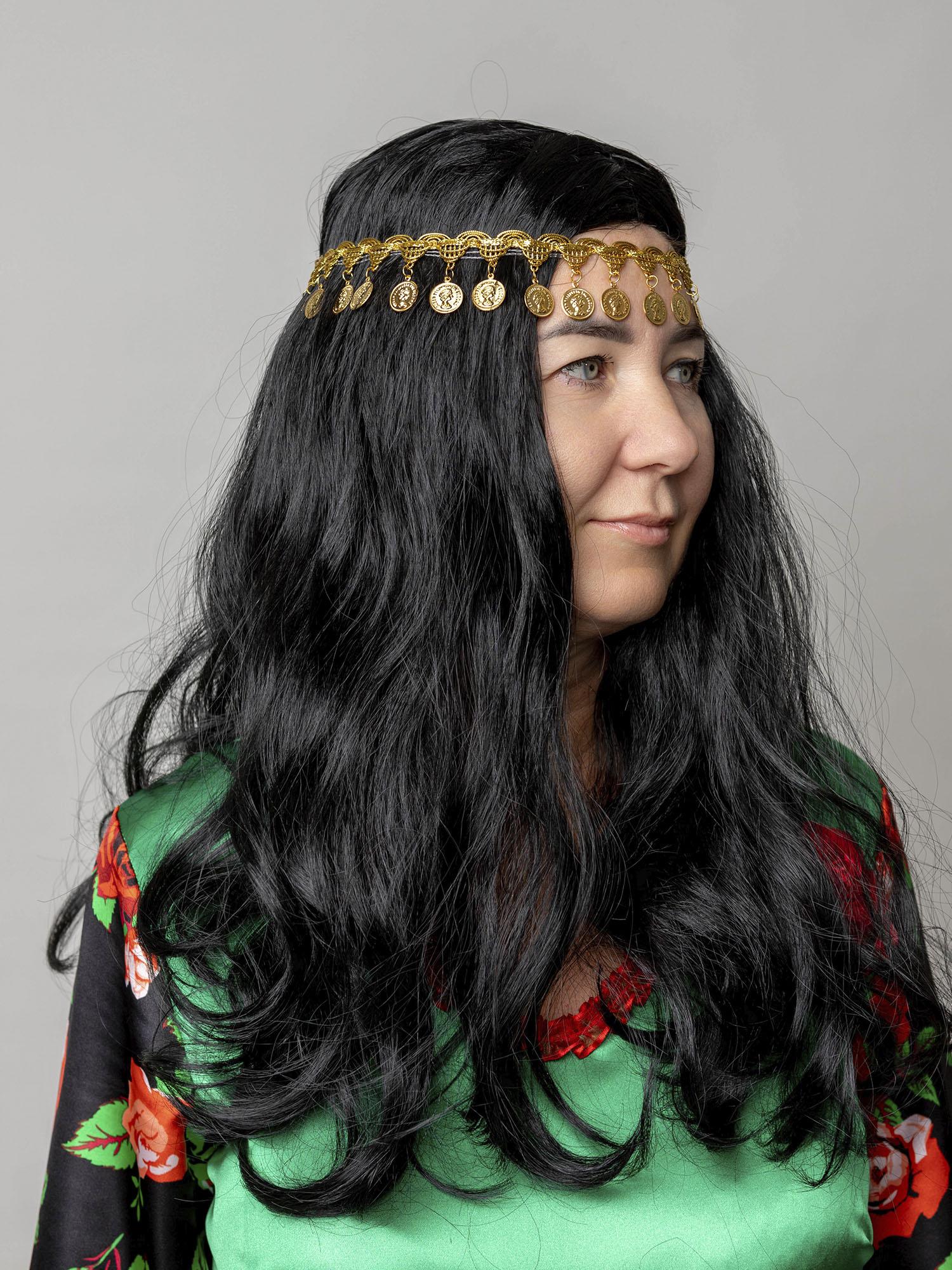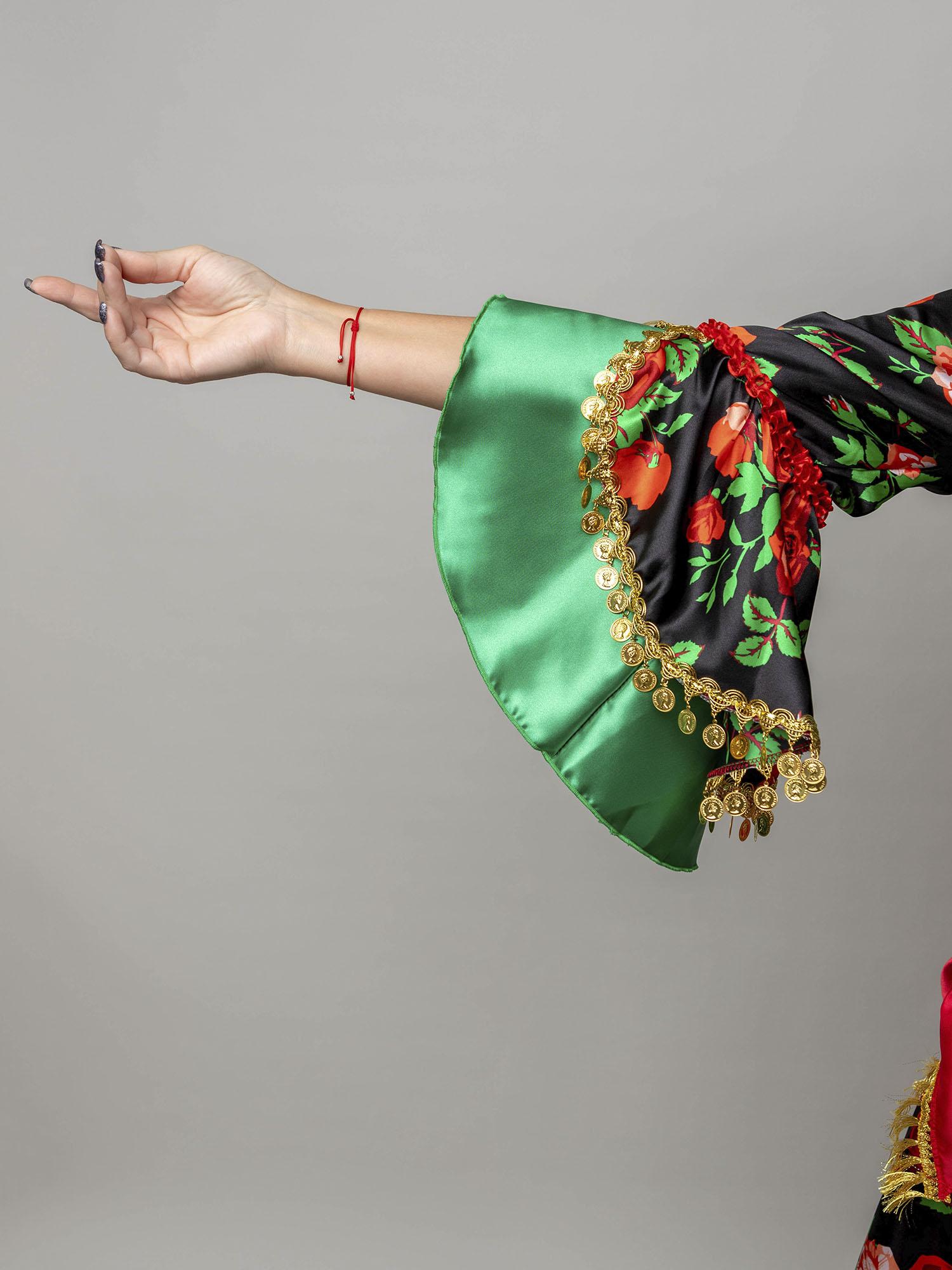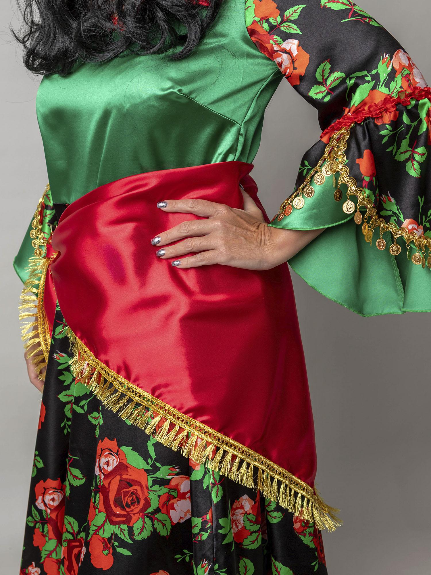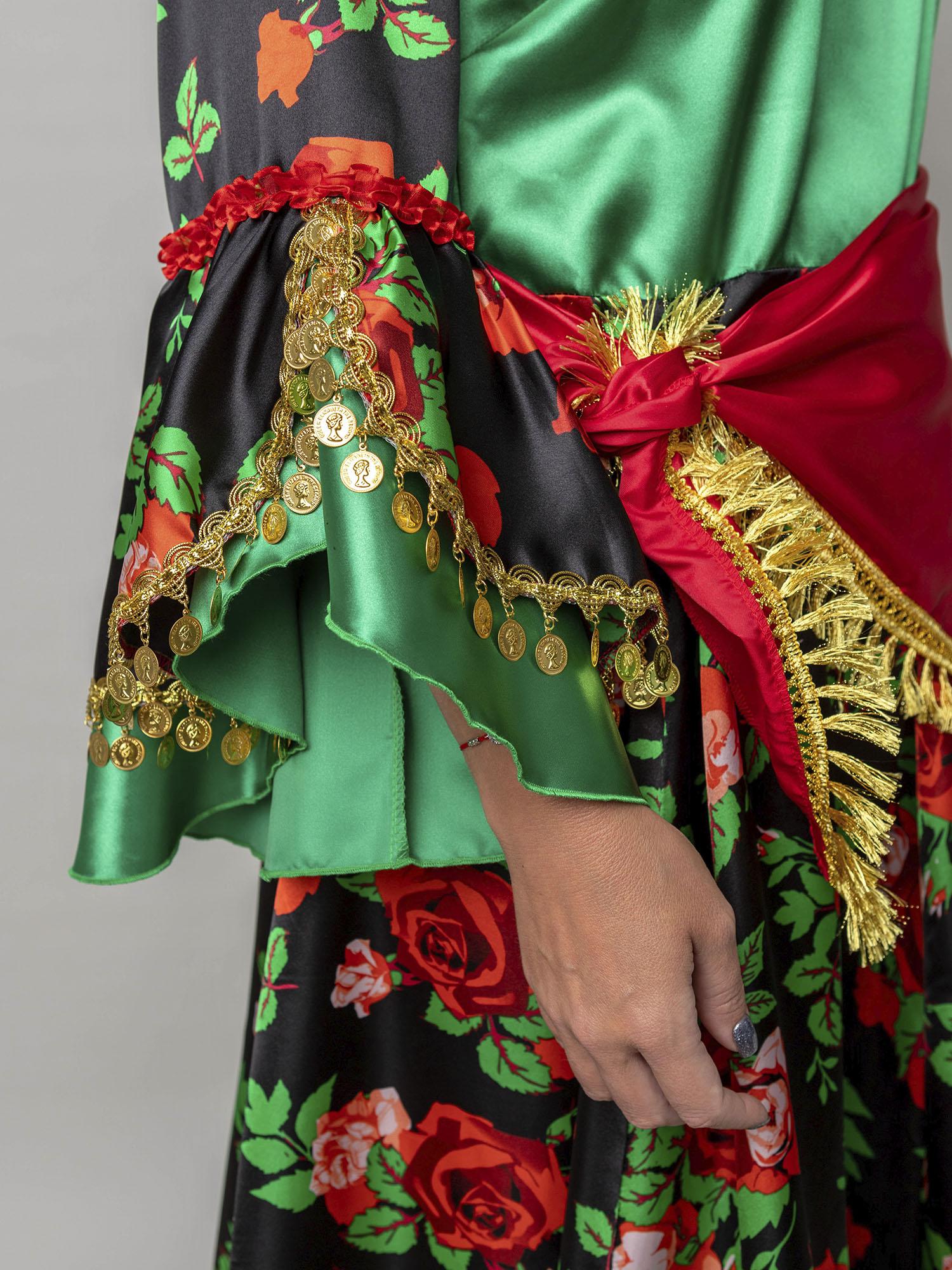 Карнавальный костюм «Цыганка Роза» — яркий и эффектный образ для сценических выступлений и праздников. В комплект входят платье, платок, парик и ожерелье на голову — монисто. Наряд создаёт выразительный, запоминающийся образ и отлично подойдёт для тематических мероприятий и утренников.