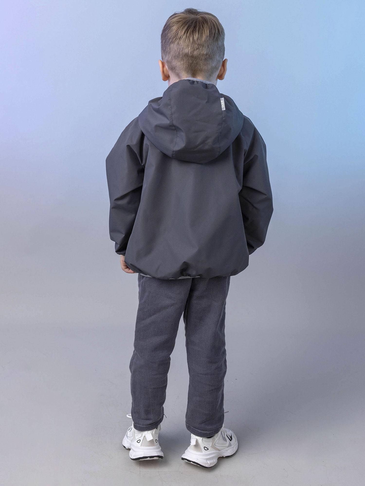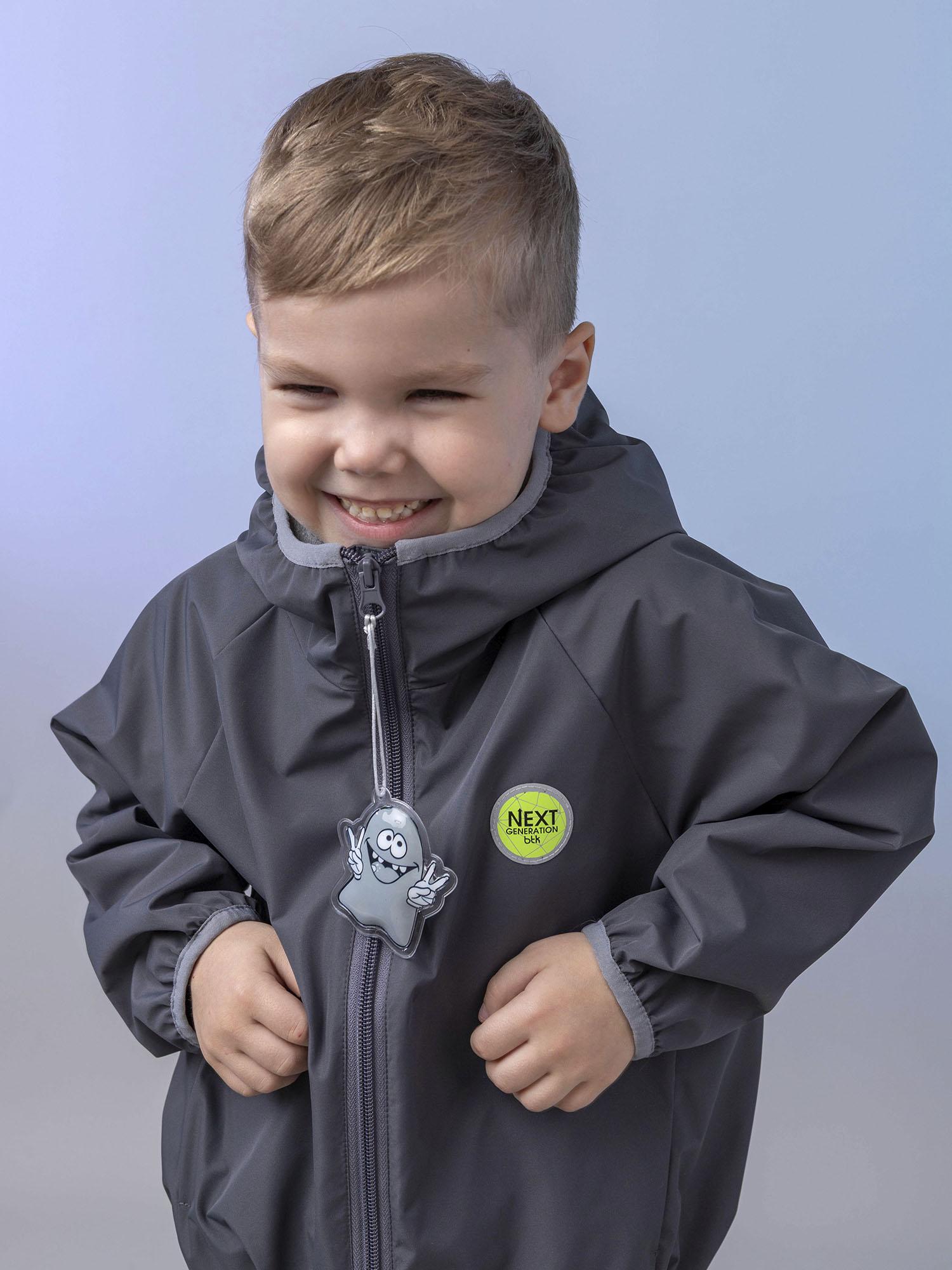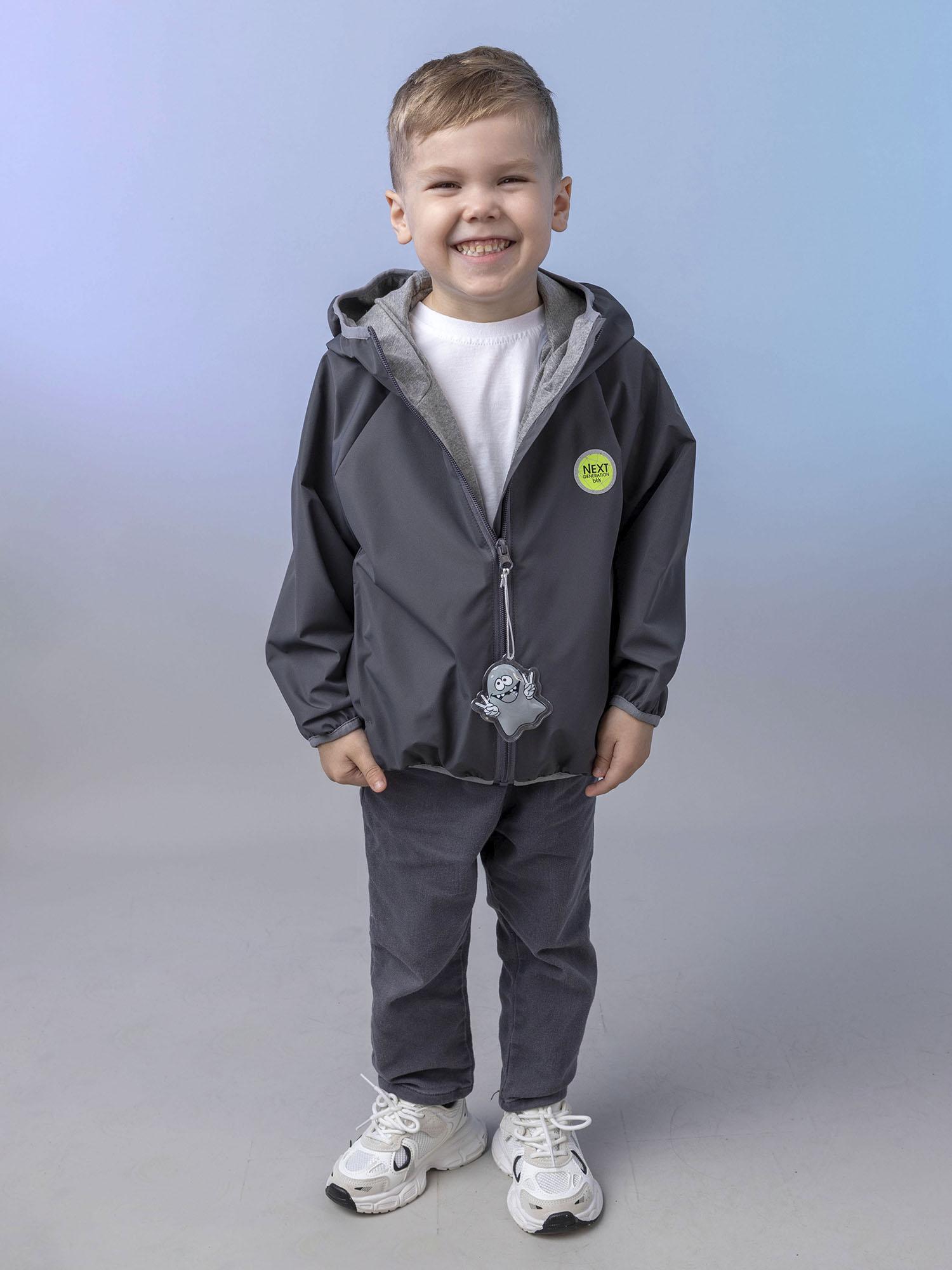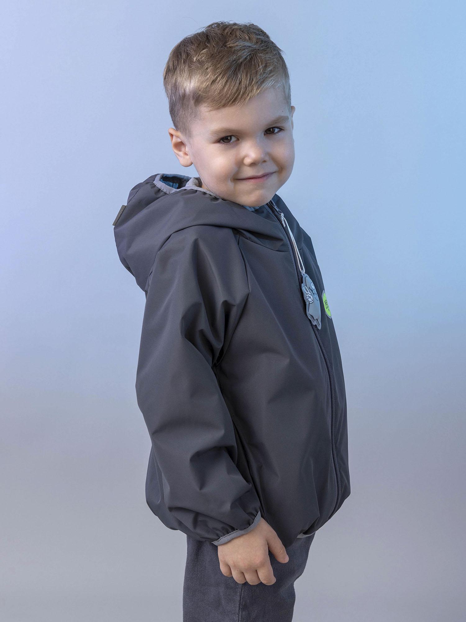Комбинированный подклад из хлопкового трикотажа и таффеты способствует отводу влаги при движении и обеспечивает комфорт при носке. Ветровка оснащена центральной застёжкой-молнией с ветрозащитной планкой и удобным втачным капюшоном-воротником.