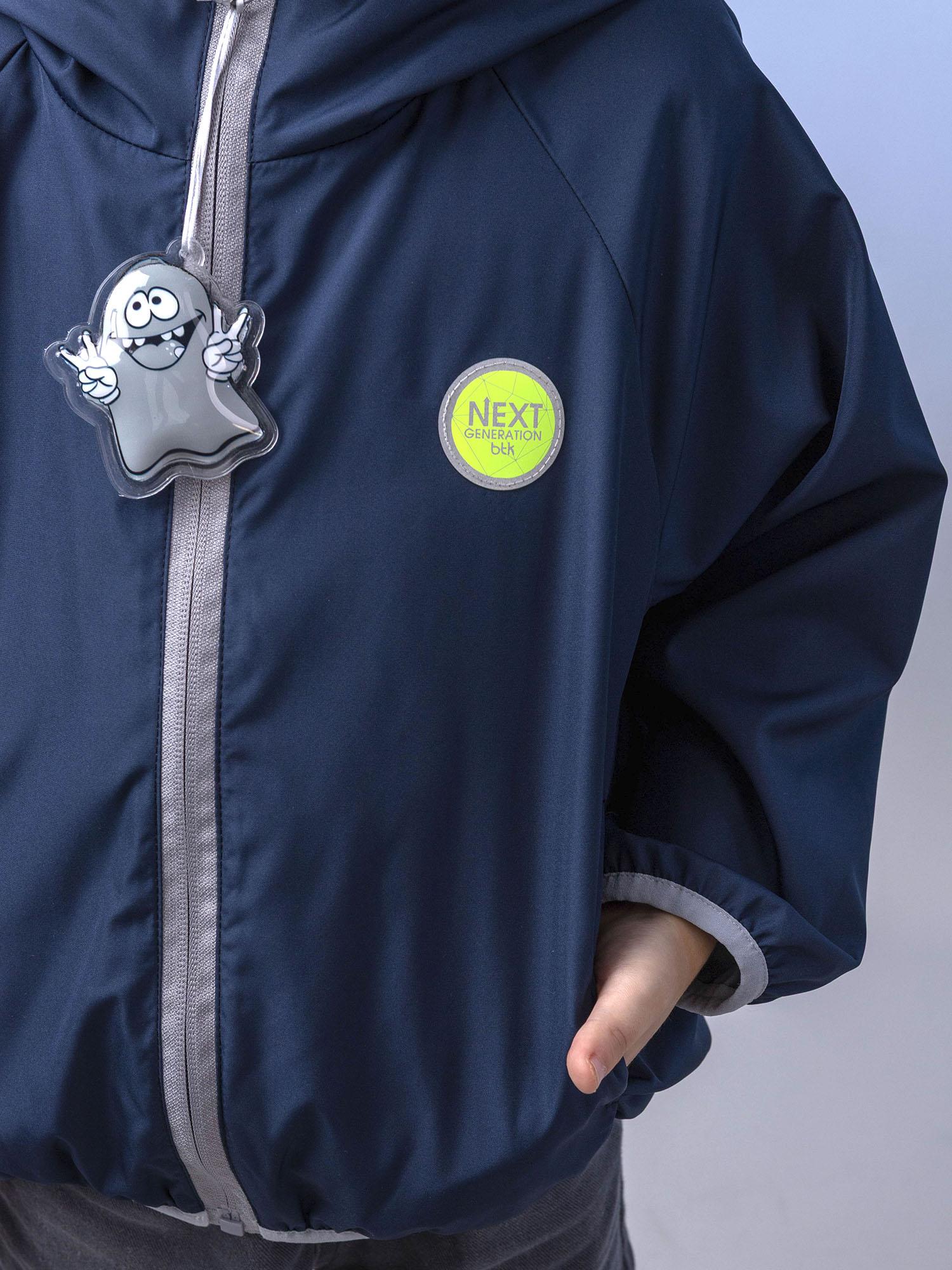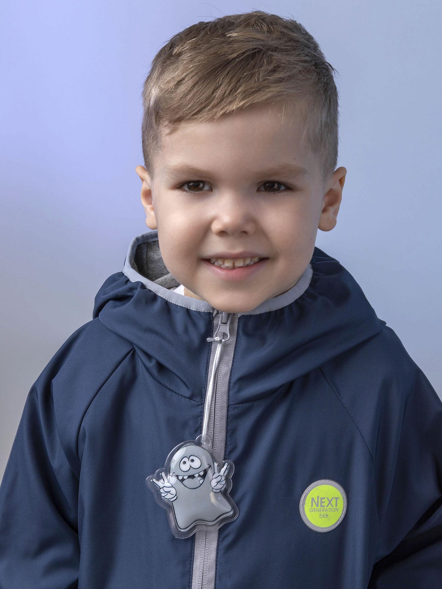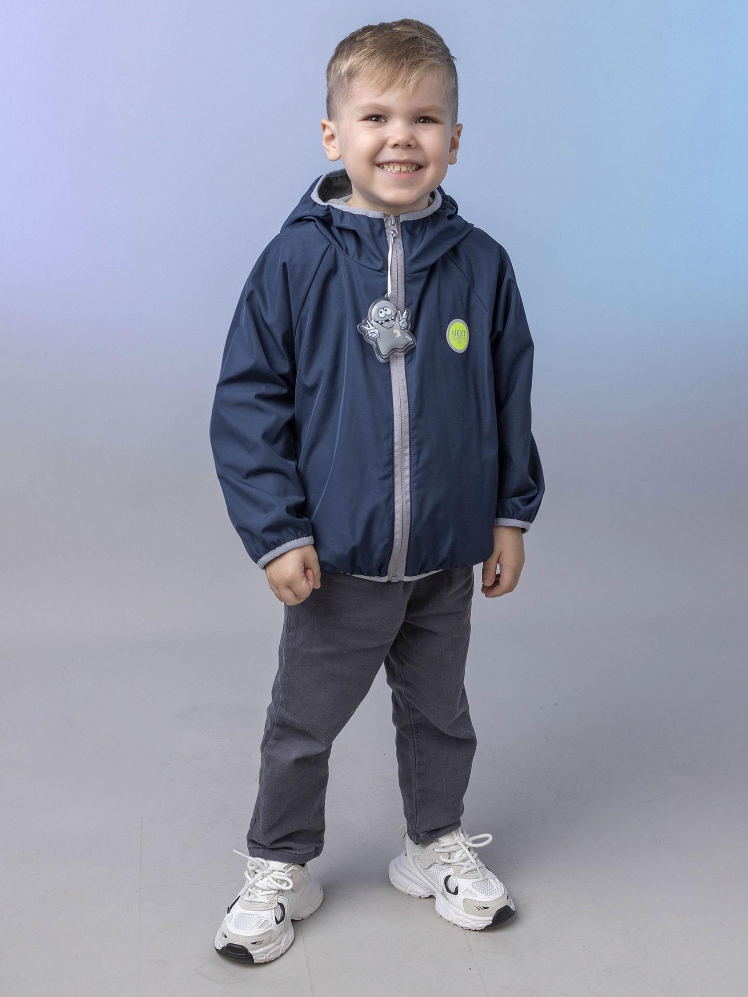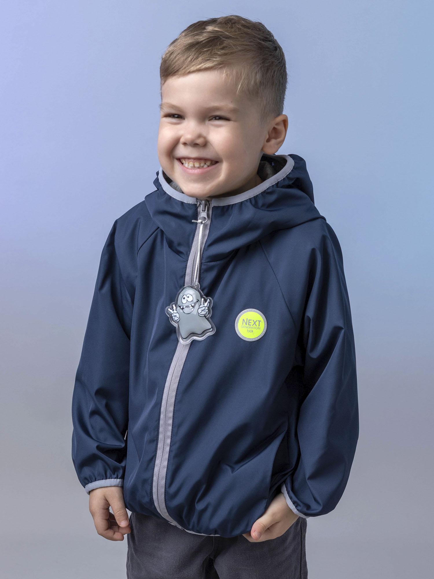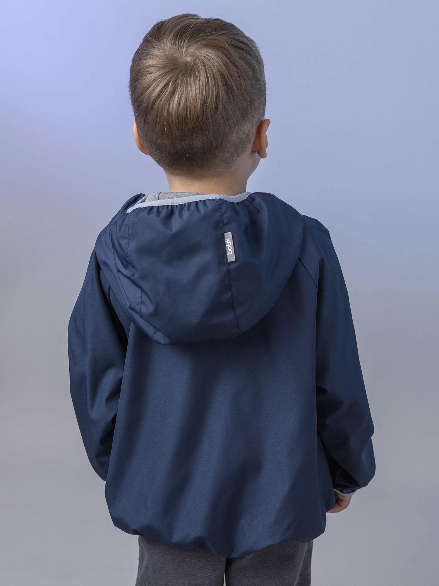 Комбинированный подклад из хлопкового трикотажа и таффеты способствует отводу влаги при движении и обеспечивает комфорт при носке. Ветровка оснащена центральной застёжкой-молнией с ветрозащитной планкой и удобным втачным капюшоном-воротником.