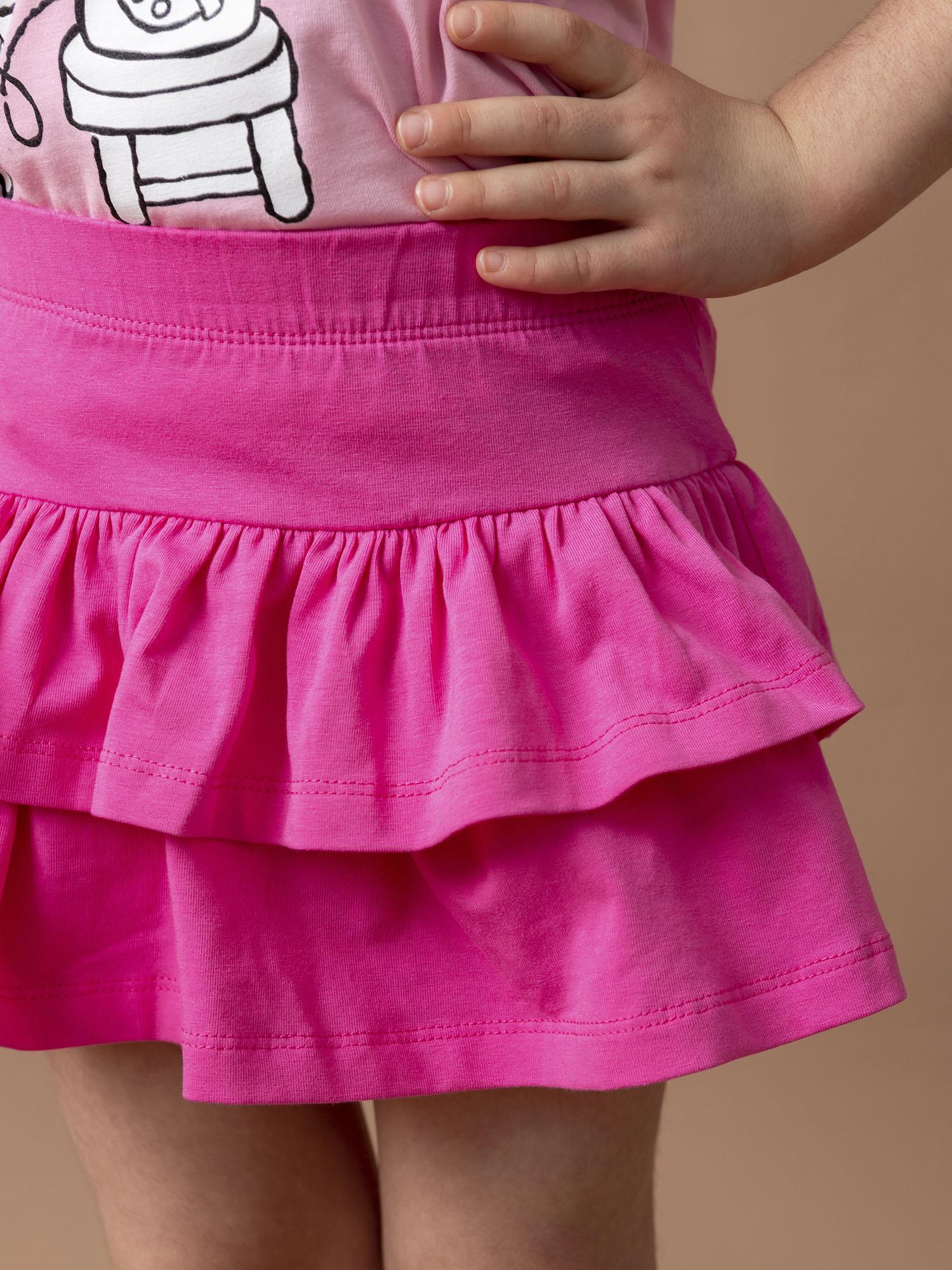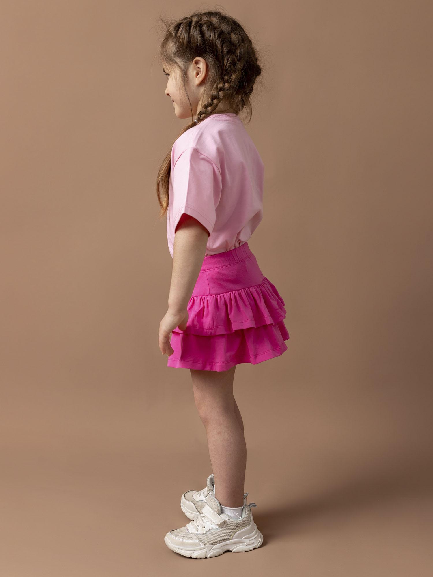Юбка-шорты для девочек фуксия — яркая и удобная модель для активных дней. Практичный крой сочетает в себе стиль юбки и комфорт шорт, не сковывает движения. Отличный вариант для прогулок и повседневной носки.